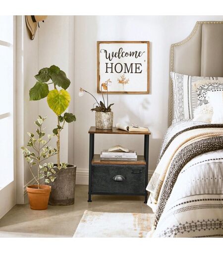 Songmics Table De Chevet À Tiroir En Tissu, Avec 2 Étagères, 41 X 41 X 47 Cm, Style Industriel, Marron Rustique Et Noir