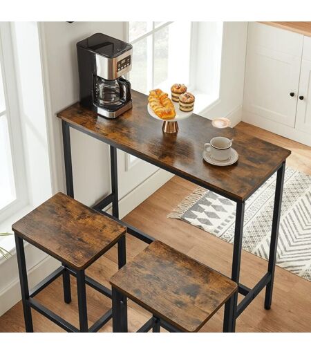 Vasagle - Ensemble de Meubles de Salle à Manger, Table et Tabourets de Bar, Table Petit-Déjeuner avec 2 Tabourets Hauts, Cadre en Acier, Style