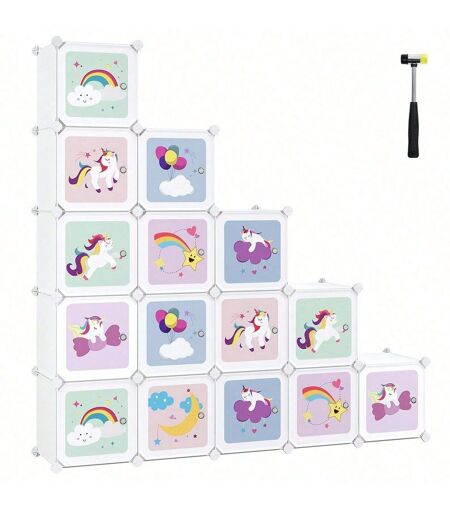 Songmics Meuble Rangement Enfant 16 Cubes, Armoire Modulable Avec Portes, 123 X 31 X 123 Cm, Blanc