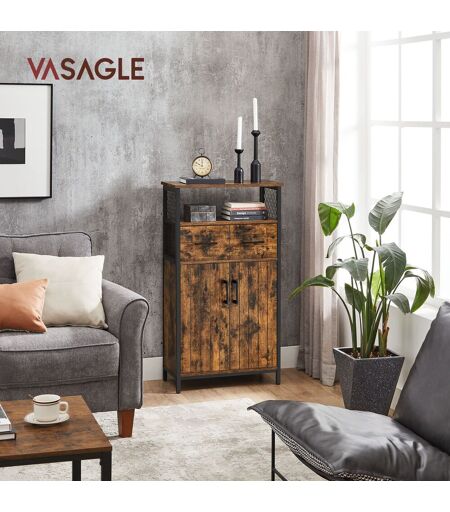 Vasagle Meuble De Rangement, Buffet, Placard, Avec Tiroir Et Étagère Réglable, Meuble De Salle De Bain, Cadre En Acier, Pour Salon, Cuisine, Style Industriel, Marron Rustique Et Noir Lsc261b01