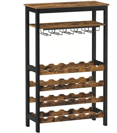 Songmics Étagère À Vin 24 Bouteilles, Meuble Rangement Avec 5 Rangées Porte-Verres, Pour Cuisine, Bar, Salle À Manger, Cave, Marron Rustique Et Noir