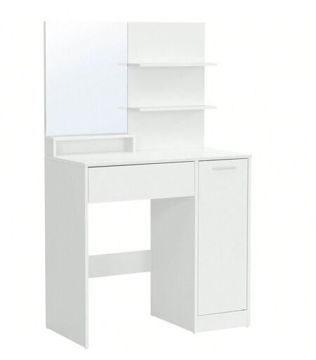 Vasagle Coiffeuse, Avec Miroir Avec Étagères, 1 Tiroir, 1 Porte Avec 2 Étagères, Blanc, 80 X 40 X 132 Cm, Sans Tabouret