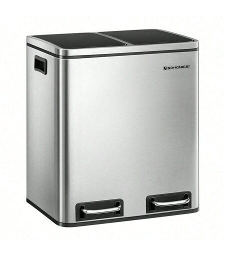 Songmics Poubelle Tri Sélectif 2 Bacs, 2 X 15l, avec seaux Intérieurs et Poignées, Argent et Noir