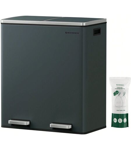Songmics Poubelle Tri Sélectif 2 X 30l, avec 15 Sacs Poubelles, Fermeture en douceur Gris Anthracite