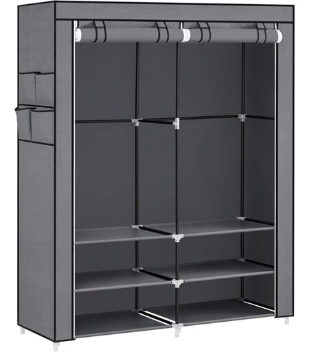 [Robuste et résistant] Grâce aux barres en acier de 16 mm de diamètre et aux raccords en plastique renforcé, ce vestiaire supporte vos vêtements (charge statique maximale par tringle : 15 kg) [Pour suspendre et poser] Cette armoire a 2 parties de suspension (hauteur maximale : 120 cm) pour éviter que vos chemises, manteaux et jupes ne se froissent pas. Les étagères accueillent vos chaussures et vos sacs. Chacun sa place ici [Pochettes latérales] Les détails qui font la différence. Cette penderie en tissu est équipée de 4 pochettes sur un côté pour ranger de petits objets comme des chaussettes, des clés et des gants. Petits détails, grande surprise ! [Montage facile] Même pas besoin de préparer des outils. Tout ce que vous avez à faire est d’enfoncer les barres métalliques dans les raccords en plastique et de mettre la housse en tissu, cela se fait en quelques minutes [Ce que vous obtenez] Une armoire en tissu avec 2 parties de suspension, 4 pochettes, un dispositif anti-basculement et ...