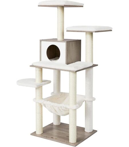 FEANDREA Arbre à Chat, Tour de Jeux de 138 cm, pour Chats Domestiques, Niche, Meuble pour Chat, Multiniveau, avec Griffoirs, avec Hamac, Plate-Forme, Housse