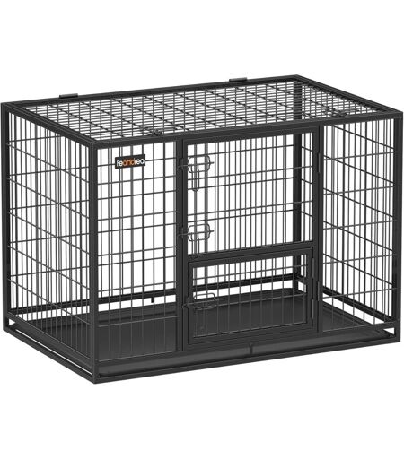 Feandrea - Cage pour Chien Lourd, pour Chiens de Taille Grande et Moyennet, Double Porte Amovible, Nettoyage Facile, Parc à Chiens, Noir, 107 x 70 x