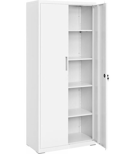 SONGMICS Armoire de bureau, Meuble de Rangement Bureau, en Acier, Placard, avec 5 Étagères, Doubles Portes, Serrure, Armoire à Outils, Étagères Réglables,