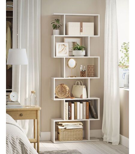 Vasagle Bibliothèque, Étagère À 6 Niveau, Meuble De Rangement, Cloison Séparateur, Style Moderne, Blanc