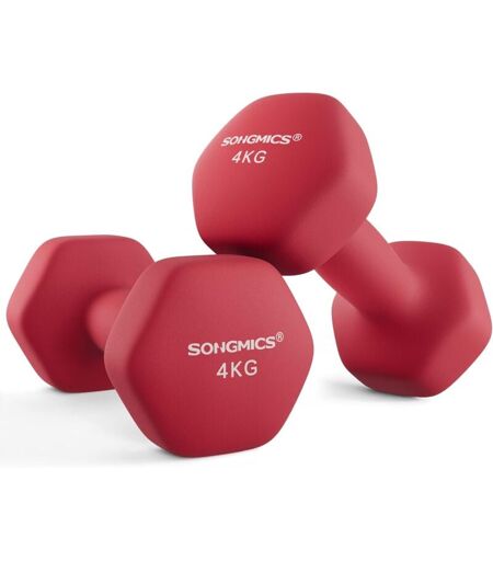 Songmics - Lot de 2 Haltères,2 x 4 kg,Hexagonaux, pour Salle de Sport, Domicile,Rouge