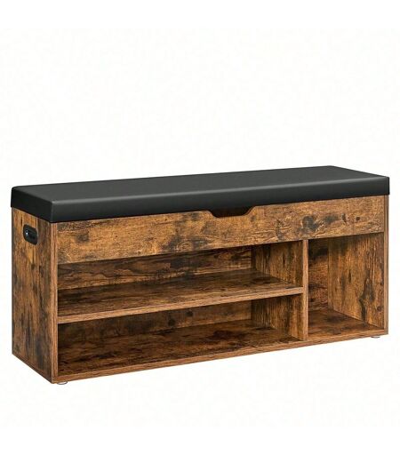 Vasagle Banc À Chaussures Rembourré, 3 Compartiments, Rangement Caché, Étagères, Capacité De Charge 150 Kg, Marron Rustique