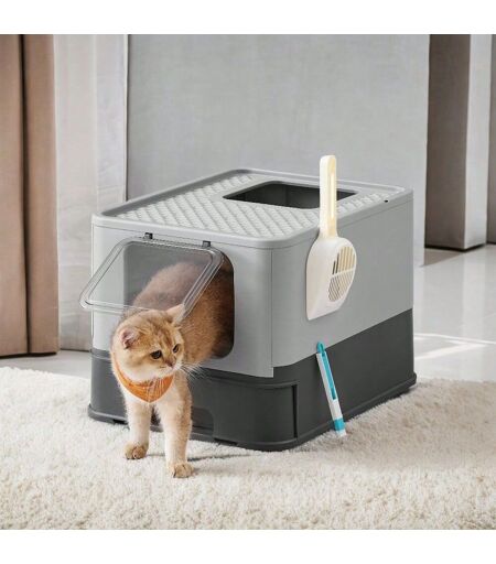 Feandrea Bac À Litière Fermé Pour Chat, Avec Plateau Amovible, Pelle, Brosse, Large, Gris Anthracite Et Gris Tourterelle