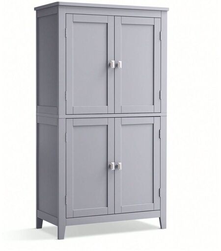 Vasagle Armoire De Salle De Bain, Placard De Cuisine Avec 4 Portes, Étagères Réglables, 30 X 60 X 110 Cm, Gris Mystique