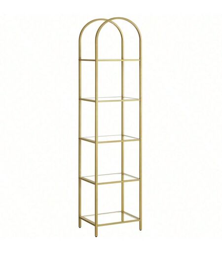 Vasagle Bibliothèque 5 Niveaux, Étagère De Rangement En Verre Trempé, Dessus Arqué, Doré Métallique Et Transparent