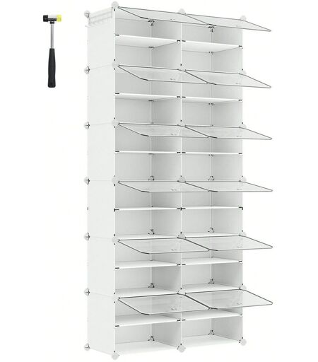 Songmics Étagère À Chaussures 12 Compartiments, Étagère De Rangement Modulable, Compartiment De 30 X 40 X 30 Cm, Avec Porte, Cadre En Acier, Panneaux En Plasti