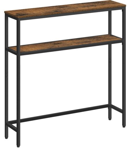 VASAGLE Console pour Couloir, Table de Salon Fine à 2 Niveaux, Table d'Appoint avec 2 Étagères, 20 x 80 x 80 cm, pour Salon, Couloir, Entrée, Marron Rustique