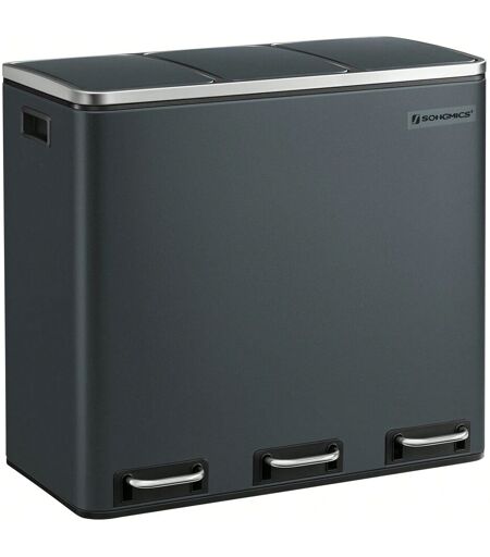 Songmics Poubelle Tri Sélectif 3 Bacs, 3 X 18l, Couvercle à fermeture Lente, pour cuisine, Gris Anthracite