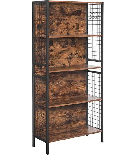 Bibliothèque, Étagère de Rangement, 4 Niveaux, pour Livres et Objets de décoration, Cadre en Acier Stable, avec Crochets en S, pour Salon, Chambre, Marron Rustique et Noir LBC023B01 ...