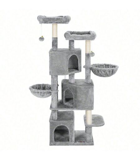 Feandrea Grand Arbre À Chat, Avec 3 Niches, 164 Cm De Hauteur, Gris Clair