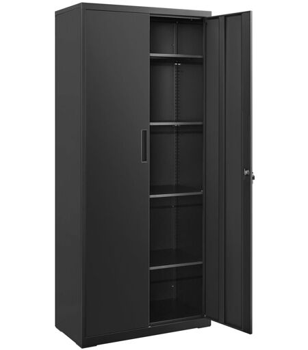 Meuble de Rangement Bureau, en Acier, Placard, 5 Niveaux, Doubles Portes, Serrure, Armoire à Outils, Étagères Réglables, pour Garage, Bureau, Noir Mat ...