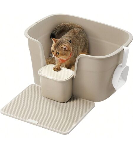 Feandrea Bac À Litière, Litière Extra Large Avec Paroi Latérale, Avec Un Tapis De Litière, Boîte De Rangement, Pelle, Pour Grand Chat, Beige Cappuccino
