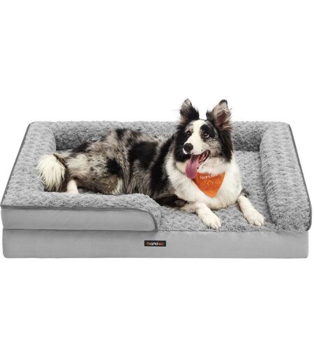 Feandrea Panier Pour Chien, Mousse Alvéolée, Bords Surélevés Rembourrés, Housse Amovible En Tissu Peluche Aux Motifs Roses, 106 X 81 X 18 Cm, Gris Tourterelle