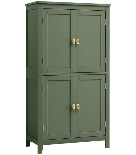 Vasagle Armoire De Salle De Bain, Meuble De Rangement, Placard De Cuisine Avec 4 Portes, Étagères Réglables, 30 X 60 X 110 Cm, Vert Forêt