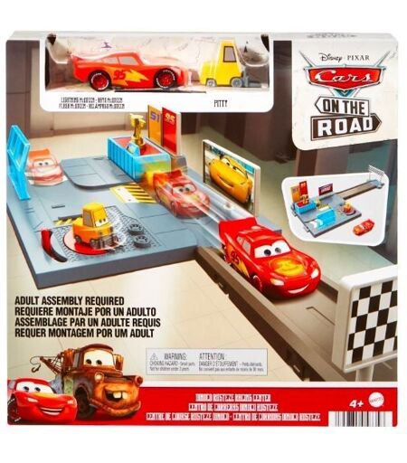 Disney Pixar Cars Coffret Sur la route Centre Rust-Eze Dinoco avec véhicule Flash McQueen Pitty rotatif lanceur et rampe courte Jouet Enfant D s 4 ans HGV69