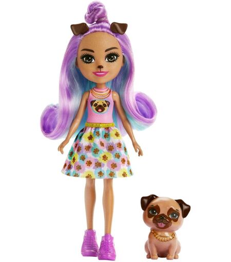 Mattel City Tails Main Street Enchantimals - Bêtes Citadines - Poupée Penna Carlin Et Figurine Animal Trusty - Mini Poupée - 4 Ans Et +