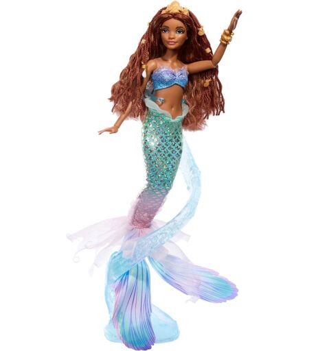 Jouez sous la mer avec cette poupée sirène Ariel deluxe à l'occasion de la sortie événement du nouveau film Disney La Petite Sirène ! Cette poupée Ariel articulée est dotée de sa queue de sirène emblématique et de ses longs cheveux roux avec bijoux de cheveux, pour réaliser des coiffures à l'infini ! Un socle pour poupée avec des tourbillons ajoute une touche théâtrale pour jouer ou pour l'exposer. Les fans adoreront rejouer leurs moments préférés du film ou imaginer de nouvelles aventures dans l'océan comme sur la terre ferme avec Ariel ! La poupée ne peut pas tenir debout toute seule. Les couleurs et les décorations peuvent varier. Inspirée de La Petite Sirène de Disney, la poupée sirène Ariel deluxe possède la même tenue sous-marine emblématique que dans le film ! La poupée sirène Ariel est entièrement articulée au niveau des bras, des poignets, des coudes, des pieds et des jambes ! Ariel porte un haut brillant dégradé avec détails volants et une queue de sirène à couleurs dégradées avec des écailles à détails brillants ! Ariel est dotée de ses longs cheveux roux avec bijoux de cheveux en perles et une couronne dorée avec détails perles, qui inspirent des coiffures à l'infini et célèbrent la beauté des cheveux naturels. Clipsez la poupée Ariel sur le socle pour poupée avec tourbillons pour imaginer la vie d'Ariel dans la mer ! Une excellente idée de cadeau pour les enfants qui veulent recréer les scènes préférées du film ou imaginer leurs propres histoires palpitantes ! Les fans peuvent collectionner toutes les poupées Disney La Petite Sirène pour imaginer toutes sortes d'aventures sous-marines ou terrestres ! Articles vendus séparément. Certains produits peuvent ne pas être commercialisés. Contenu de la boîte Inclut 1 poupée, avec tenue, 1 couronne amovible, 1 bracelet amovible, 6 bijoux de cheveux perles amovibles et 1 socle pour poupées Qualités et caractéristiques environnementales Recyclabilité : emballage majoritairement recyclable en séparant les éléments. ...