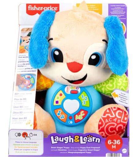Mattel JFD20 Fisher-Price - Peluche musicale - - Sis Éveil Progressif Rires et Éveil de Fisher-Price est une peluche musicale toute douce qui initie bébé à l'alphabet, aux formes, aux premiers mots et plus encore ! - Les tout-petits peuvent appuyer sur les 5 boutons du ventre de Sis pour voir son c?ur s'illuminer de différentes couleurs et entendre plus de 80 chansons, sons et phrases. Avec plus de 12 chansons originales et 3 niveaux d'apprentissage Éveil Progressif pour faire évoluer le contenu éducatif à mesure que bébé grandit, Sis Éveil Progressif va sans doute devenir la meilleure amie de votre enfant ! - Fonctionne avec 3 piles AA (fournies). Appuyez sur le bouton en forme de globe pour choisir la langue : français, anglais, allemand, italien ou néerlandais. - Les couleurs et les décorations peuvent varier. - - Détails : - - Jouet d'éveil musical en peluche qui initie bébé aux premiers mots avec des lumières et plus de 80 chansons, sons et phrases - 5 activations ! Appuyez sur les boutons du ventre de Sis pour commencer à apprendre en jouant. Utilisez le bouton en forme de globe pour sélectionner une langue : français, anglais, allemand, italien ou néerlandais - Le c?ur de Sis s'illumine au rythme des chansons et des sons qui enseignent les différentes couleurs - Les 3 niveaux Éveil Progressif évoluent avec les tout-petits et leur font découvrir leurs premiers mots, des couleurs, des formes, l'alphabet, les chiffres, le calcul et plus encore - Améliore la motricité fine et globale, développe les capacités sensorielles et contribue à renforcer le sentiment de sécurité et de bonheur des bébés et des tout-petits de 6 mois à 3 ans - Smilestones : l'éveil tout sourire ! Ce jouet favorise l'acquisition du langage en initiant bébé aux premiers mots et en l'encourageant à les identifier et à les chanter ...