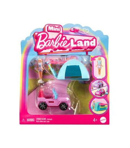 Entrez dans l'univers de Barbie avec Mini-BarbieLand : un endroit où vous pouvez laisser libre cours à vos rêves les plus fous en format mini ! Ces mini-véhicules surprises ne demandent qu'à être exposés ou à s'élancer vers de nouvelles aventures. Cette reproduction de l'emblématique Véhicule Tout-Terrain de Barbie change de couleur et comprend une tente. Ce coffret contient une poupée Barbie de 3,8 cm au look impeccable et articulée à la taille afin qu'elle puisse s'asseoir au volant pour partir à l'aventure dans Mini-BarbieLand. Les fans à partir de 4 ans voudront collectionner toutes ces voitures stylées pour construire leur propre mini-univers ! Articles vendus séparément. Certains produits peuvent ne pas être commercialisés. Les couleurs et les décorations peuvent varier. Pénétrez dans Mini-BarbieLand avec les coffrets véhicules Barbie et préparez-vous à laisser libre cours à vos rêves les plus fous en format mini ! Ce coffret inclut une reproduction du célèbre Véhicule Tout-Terrain de Barbie dans une version qui change de couleur en un clin d'oeil, avec une poupée de 3,8 cm et une tente ! Il vous suffit de plonger le véhicule dans de l'eau très froide pour qu'il change de couleur et dans de l'eau chaude pour qu'il retrouve sa couleur initiale. Des moments de jeux illimités ! Une tente permet aux enfants de rechercher le lieu de camping idéal pour encore plus de possibilités de jeu et d'histoires à inventer ! Inclinez la poupée pour l'asseoir au volant et poussez le véhicule sur les routes de Mini-BarbieLand. Il y a de la place pour 2 poupées ! La poupée Barbie est également dotée d'un socle en forme de coeur qui se fixe aux coffrets Mini-BarbieLand pour créer des histoires et l'exposer (coffrets vendus séparément). Les fans peuvent collectionner l'ensemble des poupées, véhicules et coffrets Mini-BarbieLand pour imaginer leurs propres mini-univers et inventer de grandes histoires (tous vendus séparément certains produits peuvent ne pas être commercialisés). Contenu de la boîte Contient 1 mini-poupée Barbie, 1 jouet 4x4 et une tente. Qualités et caractéristiques environnementales Incorporation de matière recyclée : emballage comportant au moins 8% de matières recyclées en moyenne. Recyclabilité : emballage entièrement recyclable en séparant les éléments. Attention : Ne convient pas aux enfants de moins de 36 mois. Assemblage par un adulte requis. ...