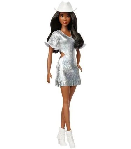 Barbie - Poupée Barbie Fashionistas Robe Argentée avec chapeau de cowboy - Barbie - HYT95