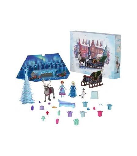 Avec le Calendrier de l'Avent Disney La Reine des Neiges, les enfants peuvent célébrer les fêtes de fin d'année en s'amusant pendant 24 jours ! Chaque jour révèle son lot de surprises, dont les mini-figurines Anna et Elsa (9 cm) et les figurines de leurs amis Olaf et Sven. Plus de 20 autres cadeaux attendent d'être découverts, dont du sable à modeler, des moules et des accessoires à détacher. Un cadeau de Noël idéal pour les fans de La Reine des Neiges et de L'aventure givrée d'Olaf de Disney ! Les poupées ne tiennent pas debout toutes seules. Les couleurs et les décorations peuvent varier. Grâce à ce Calendrier de l'Avent Disney La Reine des Neiges, inspiré du célèbre court-métrage L'aventure givrée d'Olaf de Disney, les enfants peuvent compter les jours jusqu'aux fêtes en découvrant une surprise quotidienne. Les surprises de ces 24 jours incluent les mini-figurines articulées Anna et Elsa (9 cm), avec des jupes amovibles inspirées de L'aventure givrée d'Olaf. Deux personnages préférés des fans se joignent aux festivités : Olaf le bonhomme de neige et Sven le renne ! La poupée Anna a des genoux articulés afin de monter sur le dos de Sven. Les enfants peuvent faire des boules de neige avec Olaf à l'aide du sable blanc à modeler et des moules, ou aider Anna et Elsa à décorer Arendelle de flocons de neige ! Les éléments détachables apportent une touche de magie supplémentaire : un arbre à décorer et un traîneau promettent d'innombrables aventures enneigées. C'est le cadeau idéal pour les enfants qui souhaitent célébrer les fêtes de fin d'année avec quelques-uns de leurs amis préférés de l'univers La Reine des Neiges de Disney ! Contenu de la boîte Inclut 2 mini-figurines, 2 amis animaux, 1 sachet de sable à modeler et 24 accessoires. Qualités et caractéristiques environnementales Incorporation de matière recyclée : emballage comportant au moins 9% de matières recyclées en moyenne. Recyclabilité : emballage entièrement recyclable en séparant les éléments, imprimé(s) papier(s) entièrement recyclable(s). Attention : Ne convient pas aux enfants de moins de 36 mois. Assemblage par un adulte requis. ...