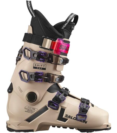 La Shift Pro 130 AT GW Humus/Black est une chaussure de ski all-mountain pour homme de la marque Salomon.La gamme Shift Pro offre des performances incroyables aussi bien en freerando qu'en ski alpin. Elle a été conçue pour les skieurs qui adorent dévaler les champs de poudreuse à toute vitesse, mais qui aiment aussi s'attaquer à l'ascension d'un sommet lorsque les conditions appellent. Ultra-polyvalentes, les Shift Pro sont des chaussures stables et puissantes qui vous permettront de profiter de toute la montagne ! Cette version 130 est la chaussure la plus rigide et performante de la gamme grâce à son flex élevé de 130. Elle offre une largeur aux métatarses confortable et réglable de 100mm à 106mm, ce qui la rend agréable à porter toute la journée.Pour vos sorties freerando, on retrouve une semelle GripWalk, des inserts SensiFit plus souples qui assurent une transmission directe de la puissance, ainsi qu'un mécanisme ski/marche Sure Lock qui accroît la mobilité du collier pour permettre un mouvement du pied plus naturel. Quant à la descente, les 4 crochets en aluminium maintiennent bien le pied et la technologie Coreframe offre un meilleur ressenti du terrain et une transmission de puissance accrue pour des performances exceptionnelles. Le meilleur du ski alpin et du ski de randonnée dans une seule et même chaussure !Grâce à son chausson My CustomFit 4D Race, la Shift Pro 130 AT reste confortable toute la journée ! Pour un fit entièrement personnalisable, on retrouve le procédé Custom Shell HD permettant de personnaliser toutes les parties de la chaussure, que ce soit la coque, le collier ou le chausson.Ainsi, cette chaussure bien complète est idéale pour les skieurs experts souhaitant se faire plaisir sur les pistes comme en dehors, pour un poids de seulement 1693g la chaussure !Si vous êtes à la recherche d'une chaussure à tout faire, confortable, puissante et performante pour vous accompagner dans toutes vos explorations, alors la Shift Pro 130 AT GW est faite pour vous ! ...