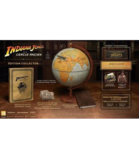 Découvrez l'un des plus grands mystères de l'Histoire dans Indiana Jones et le Cercle Ancien¿, une aventure solo à la première personne qui se déroule entre Les Aventuriers de l'Arche perdue¿ et La Dernière Croisade¿. Nous sommes en 1937. Des forces sinistres parcourent le globe pour trouver le secret d'un pouvoir ancestral lié au Cercle Ancien. Une seule personne peut les arrêter : Indiana Jones¿. Devenez le légendaire archéologue dans ce jeu d'action-aventure cinématique signé MachineGames, le studio primé qui a développé la récente série Wolfenstein. Todd Howard, le célèbre game designer, est aux commandes de la production.VOUS ÊTES INDIANA JONESGlissez-vous dans la peau d'Indy et partez à l'aventure dans cette histoire palpitante bourrée d'exploration, d'action immersive et d'énigmes déroutantes. Dans le rôle du brillant archéologue, réputé pour sa sagacité et son sens de l'humour, vous sillonnerez le monde pour découvrir avant vos ennemis le secret d'un des plus grands mystères de tous les temps.UN MONDE PLEIN DE MYSTÈRES VOUS ATTENDVoyagez des salles du Marshall College aux pyramides d'Égypte en passant par le c?ur du Vatican, les temples engloutis de Sukhothaï et bien plus encore. Après un cambriolage au milieu de la nuit ponctué par un affrontement contre un mystérieux colosse, vous devez partir en quête du secret stupéfiant qui explique le vol d'un artefact apparemment anodin. En forgeant de nouvelles alliances et en défiant des ennemis familiers, vous rencontrerez des personnages étonnants et devrez conjuguer ruse et réflexion pour résoudre des énigmes ancestrales et survivre à d'intenses épreuves.UN COUP DE FOUET POUR L'ACTIONLe célèbre fouet d'Indiana est au c?ur de son équipement. Vous pourrez l'utiliser pour faire diversion, désarmer ou attaquer vos ennemis. Mais le fouet n'est pas qu'une simple arme : c'est l'outil le plus utile pour permettre à Indy de se déplacer dans son environnement. Passez discrètement au-dessus de patrouilles en vous balançant au bout du fouet et escaladez des murailles pour progresser dans un monde saisissant. Combinez l'infiltration, les corps à corps haletants et les fusillades pour affronter vos adversaires et percer le mystère.L'ESPRIT DE LA DÉCOUVERTEPlongez dans une aventure dynamique mêlant un gameplay narratif linéaire et des cartes en monde libre. Donnez libre cours à vos instincts d'explorateur pour découvrir un monde de secrets fascinants, de pièges mortels et d'énigmes diaboliques, où tout élément peut cacher le prochain ingrédient du mystère... ou des serpents. Après tout, il fallait bien des serpents, non ?Incarnez l'archéologue légendaire avec l'Édition Collector d'Indiana Jones et le Cercle Ancien¿ !CONTENU :- Réplique de la relique Faiseur du tout avec code de jeu (Édition Premium numérique)- Globe Cercle Ancien de 28 cm à compartiment caché- Nouveau journal d'aventure- SteelBook® géant- Jusqu'à 3 jours en accès anticipé- DLC narratif Indiana Jones et le Cercle Ancien¿: L'Ordre des Géants-... ...