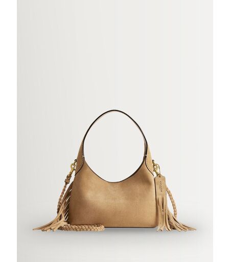 Coach COACH Cream Suede Brooklyn Shoulder Bag 23 with Fringe Detailing