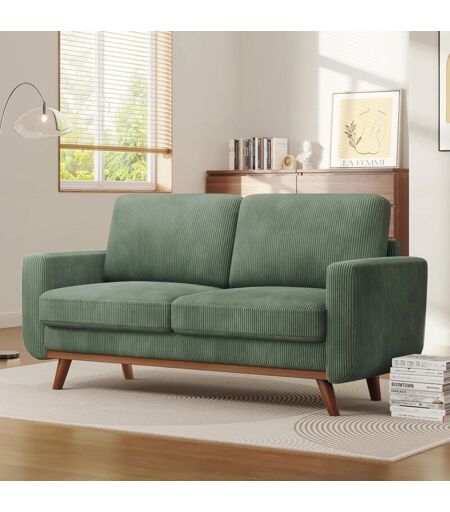 YOLEO Canapé droit 2 Places en Velours Côtelé avec Bois Massif,Canapé Loveseat Moderne avec siège extra profond pour Salon,173x76x89cm,Vert