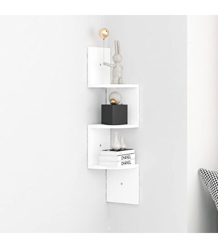 YOLEO Tagère Flottante à 3 Niveaux, Étagère d'angle Murale Multicouche, Étagère en Zig zag, Étagère décorative - 82cm Blanc