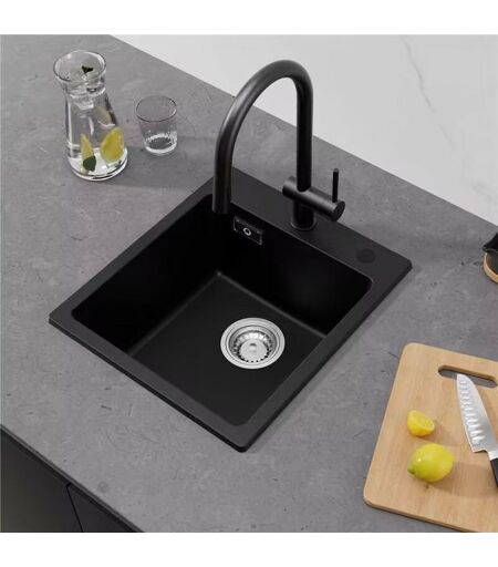 Cecipa - Evier Cuisine 1 Bac Granit 40x45cm, Evier Noir, Évier de Granit Rectangulaire, Évier de Cuisine Moderne, Petit Evier Granit, Cuve Simple