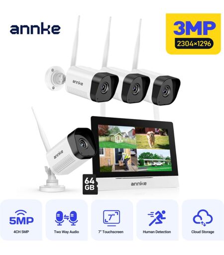 ANNKE Sannce Système de caméra sans fil extérieure sannce 3 mp avec vision nocturne, détection de mouvement et interphone vocal bidirectionnel