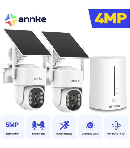 ANNKE Sannce Système de caméra de sécurité solaire sans fil 4 mp 2K avec détection de mouvement et alertes instantanées, vision nocturne couleur