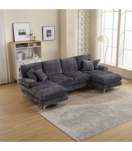 [Canapé en forme de U] Le canapé en forme de U est un excellent meuble à placer dans votre maison pour créer un coin confortable et privé pour les événements sociaux et les moments en famille. Ce canapé peut également être utilisé comme séparateur de pièce pour ajouter du style à votre pièce. [Doux et confortable] Lorsque vous vous asseyez sur le canapé, vous sentirez le soutien de l’assise et du dossier, qui sont en mousse haute résilience. Parfois, vous pouvez même faire une sieste sur la chaise au caramel. Ce canapé 4 places est fabriqué en tissu chenille respirant pour vous garder à l’aise aussi bien physiquement que mentalement. [Construction robuste] L’intérieur est doté d’un cadre en bois massif robuste et de pieds en métal robustes qui peuvent être utilisés en toute sécurité [Conception de cloison d’éponge de coussin] Ergonomique, soutien plus parfait, soutien de cloison de parties du corps, dispersion de la pression, sera plus détendu, mais prolongera également ...