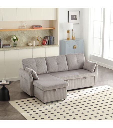 YOLEO Canapé d'angle 3 places multifonctionnel avec coffre de rangement,Canapé-lit convertible Moderne,206x130x66-88cm,Gris Clair