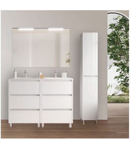 Caesaroo - Meuble de salle de bain sur pied 120 cm en bois blanc brillant avec vasque intégré - Nova - Standard
