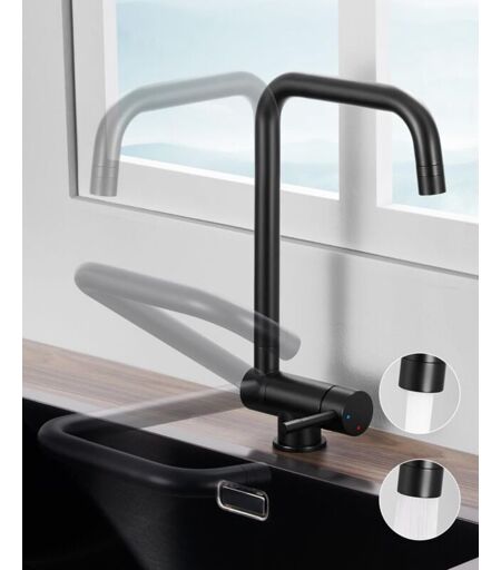 CECIPA Mitigeur Cuisine Rabattable, Robinet Cuisine avec 2 Jets, Mitigeur Cuisine Noir, Robinetterie de Cuisine Pliable, Robinet Evier Sous Fenêtre, Robinet