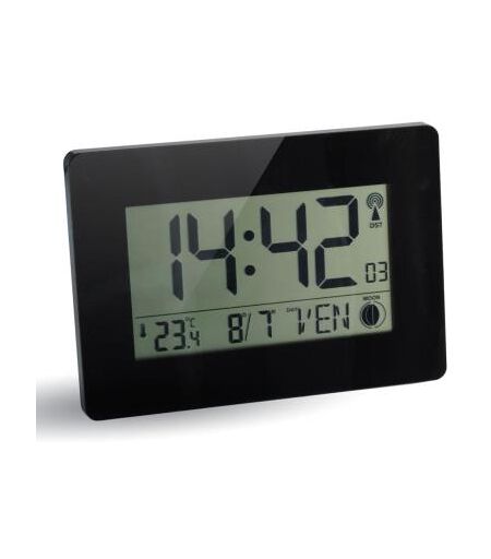Toujours à l'heure et excellente visibilité grâce aux chiffres géants ! Précise, cette horloge digitale est radio-pilotée, elle s'ajuste automatiquement et en permanence à l'horloge de Mainfligen par ondes radio, elle est donc toujours à l'heure et se met à jour automatiquement en cas de passage à l'heure d'hiver ou d'été. Dotée d'une excellente visibilité grâce à ces chiffres géants, elle vous permet de lire l'heure en un seul coup d'œil et elle affiche également le calendrier -date-mois-jour et la température intérieure. Son boîtier est quant à lui en ABS. A poser ou à fixer, son fonctionnement se fait avec 2 piles LR6, fournies. Horloge radio-pilotée Couleur cadre : Noir Type de pile : LR6 x2 fournies Dimensions : L. 22,7 x P. 3 x H. 18 cm. ...