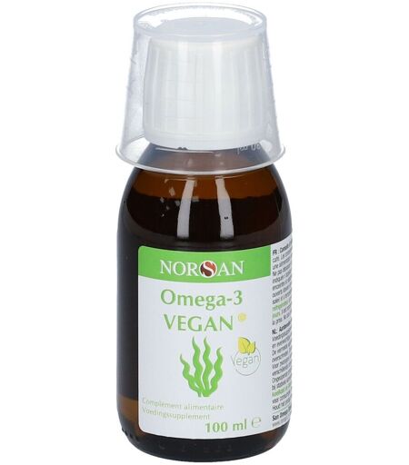 Complément alimentaire à utiliser dans le cadre d’une alimentation variée, équilibrée et d’un mode de vie sain.100 % vegan et sans poisson !Omega-3 Vegan (100 ml) est une combinaison unique d’huile végétale d’algue hautement dosée en acides gras oméga-3 marins et d’huile d’olive vierge extra issue de l’agriculture biologique (pour ses propriétés antioxydantes). Une dose journalière de 5 ml (soit env. 1 cuillère à café) apporte 2000 mg d’acides gras oméga-3 (DHA et EPA) et 800 UI de vitamine D3 végane, elle aussi (puisqu’elle est issue du lichen).L’huile d’algue omega 3 vegan liquide est très riche en DHA et en EPA. Elle constitue donc une source optimale d’oméga-3 pour tous ceux qui veulent exclure de leur alimentation tout produit d’origine animale. Il existe d’autres huiles végétales riches en oméga-3 mais celles-ci ne contiennent que l’acide gras oméga-3 ALA qui ne peut être converti par l’organisme en EPA et DHA que dans une très faible mesure !HUILE D’ALGUE OMEGA 3 VEGAN LIQUIDEL’huile d’algue NORSAN provient de la microalgue Schizochytrium sp. Elle est donc 100 % végane et convient parfaitement à tous ceux qui souhaitent s’alimenter sans consommer de produits d’origine animale. Elle apporte des nutriments essentiels comme les acides gras oméga-3 EPA & DHA.Omega-3 Vegan est une huile d’algue 100% végétale. L’huile est extraite de la microalgue marine Schizochytrium sp. Il s’agit d’une algue microscopique qui se nourrit uniquement de substances organiques et végétales, comme les feuilles mortes. La microalgue Schizochytrium sp. est particulièrement riche en acides gras oméga-3 marins DHA et EPA. Elle est donc parfaitement adaptée à la production d’une huile oméga-3 végane. En raison de sa teneur élevée en oméga-3, notre huile végétale d’algue est naturellement riche en oméga-3. Il n’est donc pas nécessaire de lui faire subir de traitement chimique pour obtenir une concentration plus élevée.L’huile est produite de manière durable et respectueuse de l’environnement. En effet, les microalgues marines entrant dans la composition d’Omega-3 Vegan sont cultivées dans de grands conteneurs d’eau de mer artificielle. Elles ne sont pas récoltées en mer. Cela permet de préserver les ressources marines et de laisser aux poissons leur base alimentaire. Il faut en effet rappeler que si les poissons sont riches en oméga-3, c’est parce qu’ils se nourrissent, entre autres, d’algues. De cette manière, nous n’interférons pas avec l’écosystème naturel de la mer, et les stocks des poissons et de krill sont préservés.HUILE D’OLIVE BIOLOGIQUE COMME ANTIOXYDANTOmega-3 Vegan contient une huile d’olive biologique vierge extra comme antioxydant.Les olives sont fournies par Rafael, notre oléiculteur espagnol à qui nous rendons régulièrement visite car nous pensons qu’une relation étroite permet d’assurer une qualité élevée et constante.Les acides gras oméga-3 sont très fragiles et doivent être protégés contre l’oxydation, non seulement avant leur consommation (dans le... ...