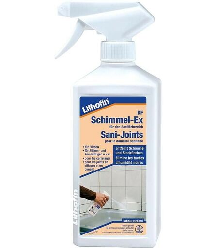 LITHOFIN KF Schimmel-Ex, vaporisateur manuel de 500 m • Détachant pour taches de moisissure • Élimine les taches noires de moisissure, les champignons, les algues et autres colorations organiques dans les sanitaires • Efficace sur les carreaux, les joints en silicone et en ciment, sur le crépi, la pierre et la maçonnerie • Nettoyant à base de chlore • Facile à appliquer • Agit rapidement • Rendement : env. 6 m²/l • Contenu : 500 ml Stockage : fermé, au frais, à l'abri de la lumière, jusqu'à env. 1 an Utiliser les produits biocides avec précaution. Toujours lire l'étiquette et les informations sur le produit avant utilisation. ...