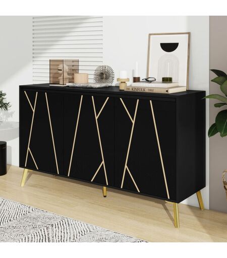 YOLEO Buffet Bas avec 3 Portes + 5 Étagères,Style Moderne,Meuble d'Entrée,Armoire de Cuisine pour Salle à Manger Salon Cuisine 140x40x80cm Noir